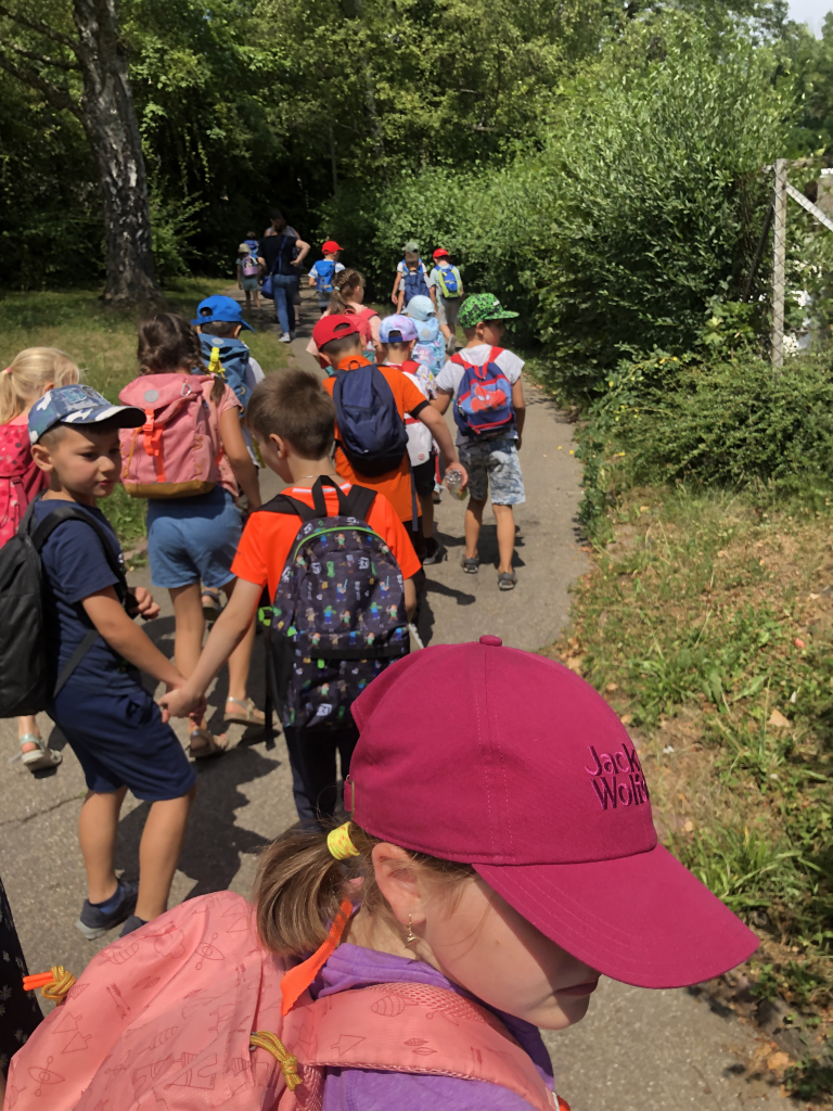 Zum Schuljahresende, gleich nach der Bücherabgabe, machten sich unsere ersten Klassen auf den Weg zum Brötzinger „Entenspielplatz“. Nach einem gemütlichen Picknick auf der Wiese blieb viel Zeit zum Klettern, Schaukeln, Rennen und Spielen.
